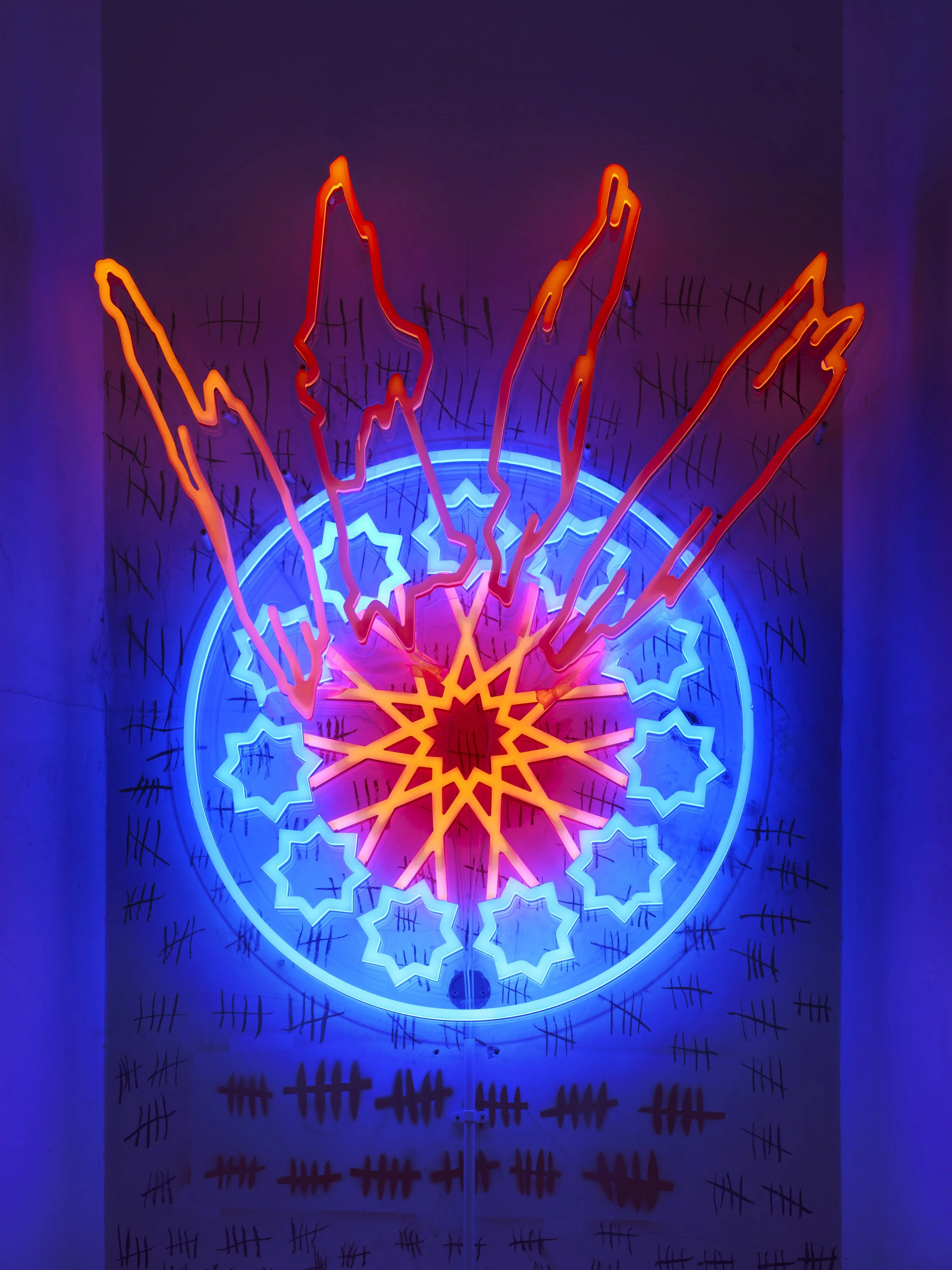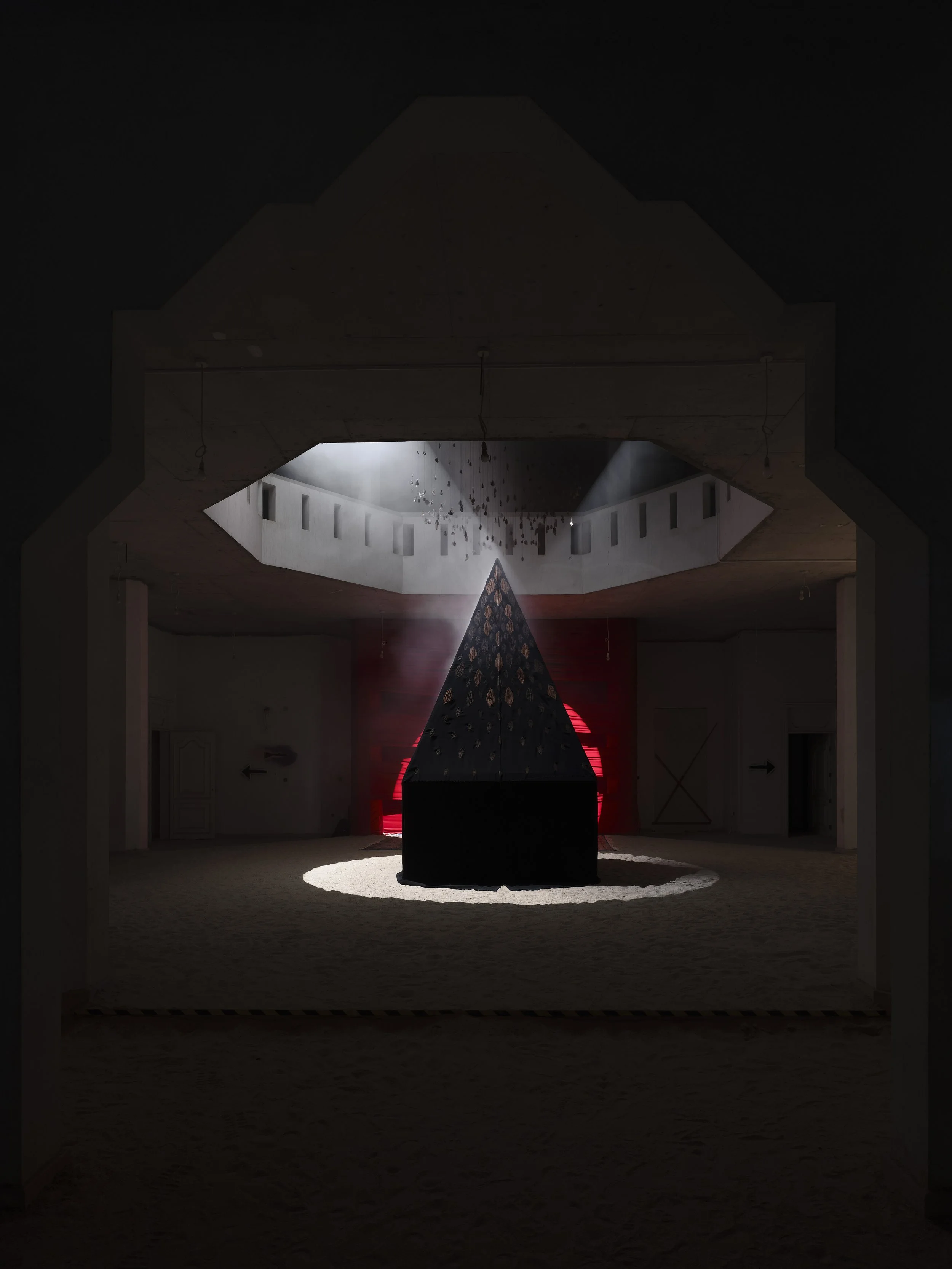 A site-responsive installation staged within an abandoned Neo-Islamic villa in Al Wakrah, Qatar.